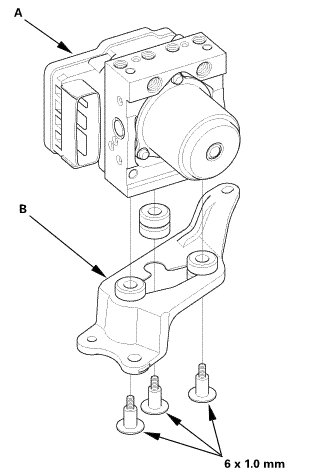 1. Install the VSA modulator-control unit (A) onto the bracket (B).