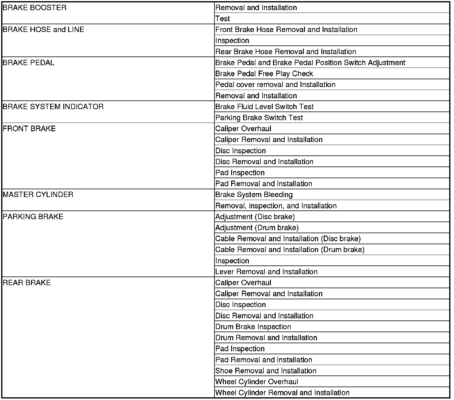 Conventional Brake Component Location Index