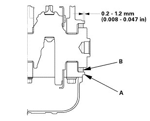 3. Measure the distance between the engine block (A) and the crankshaft oil seal (B).