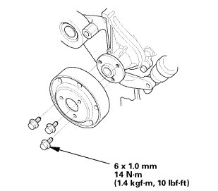 NOTE: Tighten the crankshaft pulley bolt. Do not use an impact wrench.