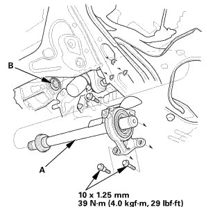 NOTE: Insert the intermediate shaft carefully to prevent damaging the oil seal (B).