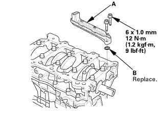 2. Tighten the oil jet bolts (B).