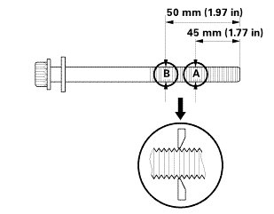 5. Measure the diameter of each cylinder head bolt at point A and point B.
