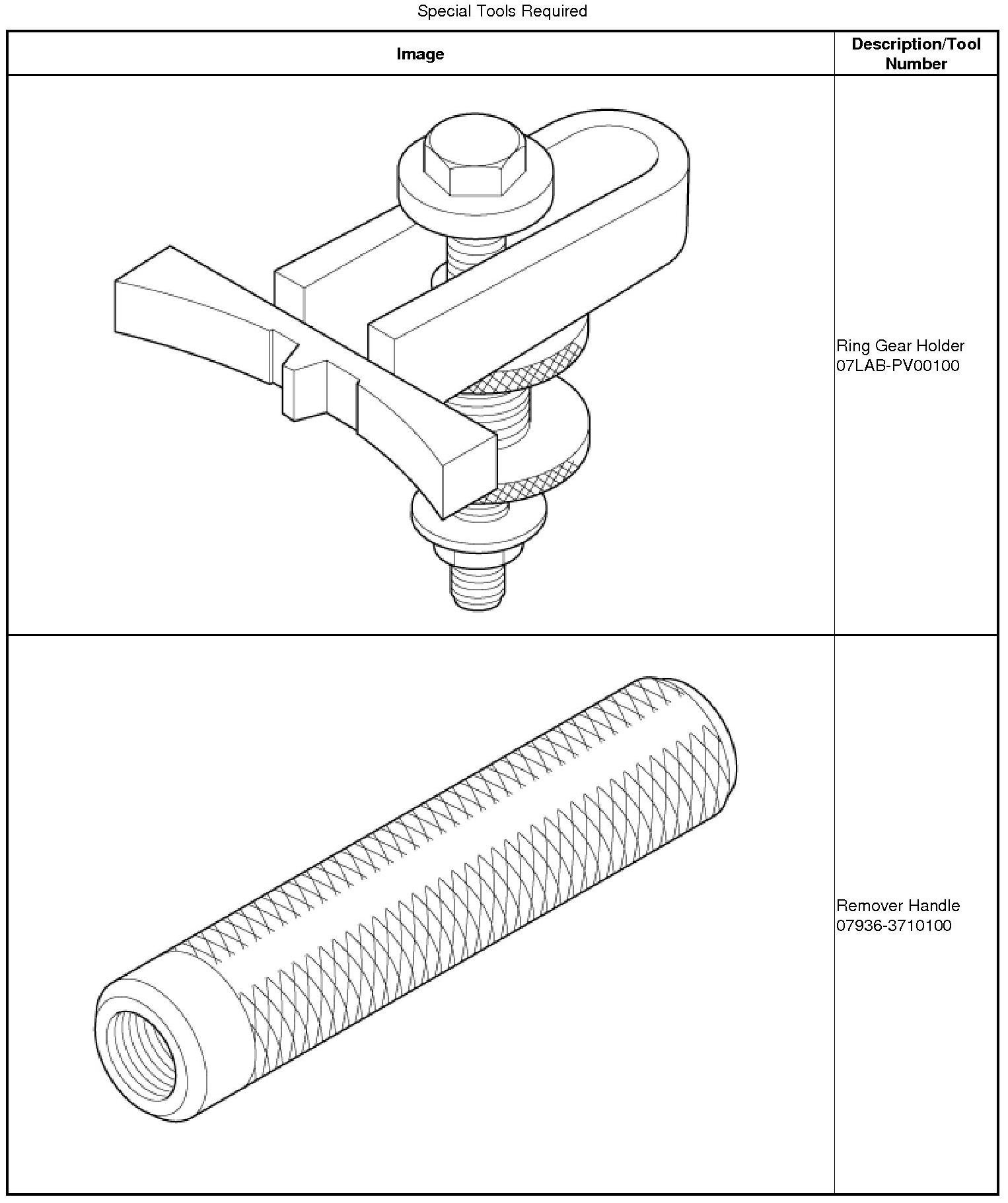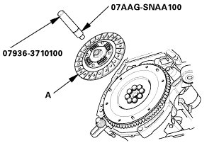 1. Remove the clutch disc (A), the clutch alignment shaft, and the remover handle.