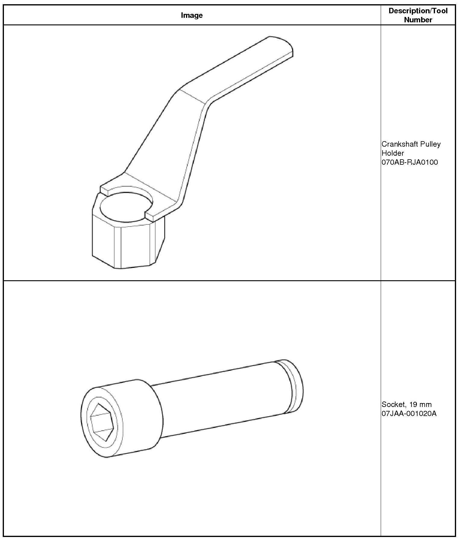 1. Hold the pulley with the holder handle (A) and the crankshaft pulley holder (B).
