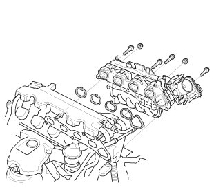8. Remove the intake manifold and throttle body assembly from the cylinder head.