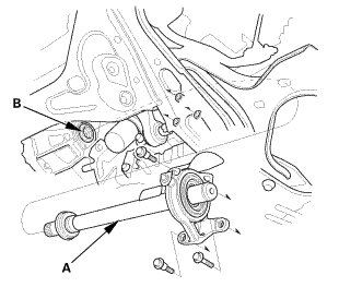 NOTE: Hold the intermediate shaft horizontal until it is clear of the differential to prevent damaging the oil seal (B).