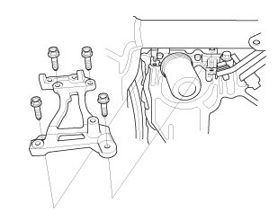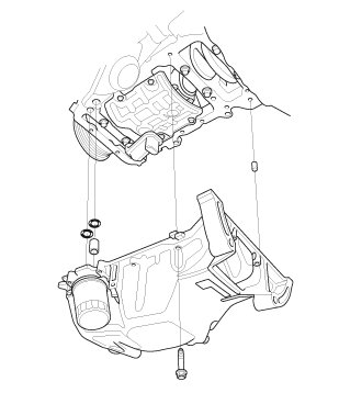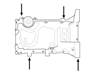 1. Using a flat blade screwdriver, separate the oil pan from the lower block in the places shown.