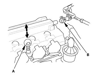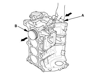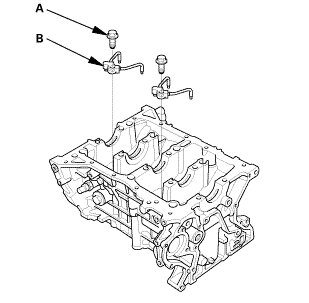 1. Remove the oil jet bolts (A) and the oil jets (B).