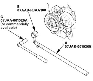 2. Remove the bolt with a socket, 19 mm (C) and a breaker bar.