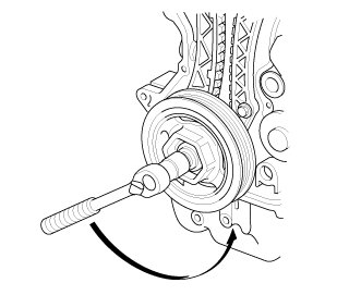3. Turn the crankshaft counterclockwise to compress the auto-tensioner.