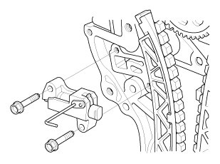 NOTE: If the holes in the lock and the auto-tensioner do not align, continue to rotating the crankshaft counterclockwise until the holes align, then install the pin.