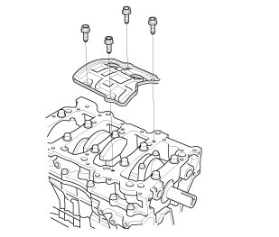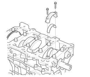 2. Remove the bearing cap bolts. To prevent warpage, loosen the bolts in sequence 1/3 turn at a time; repeat the sequence until all bolts are loosened.