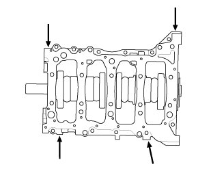 3. Using a flat blade screwdriver, separate the lower block from the engine block in the places shown.