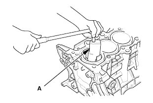 1. If you can feel a ridge of metal or hard carbon around the top of each cylinder, remove it with a ridge reamer (A). Follow the reamer manufacturer's instructions. If the ridge is not removed, it may damage the piston as it is pushed out.
