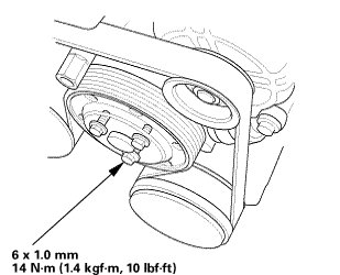 1. Tighten the water pump pulley mounting bolts.