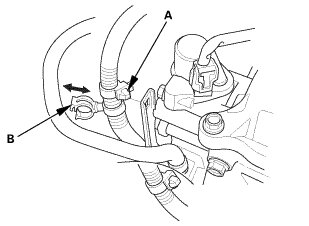 4. Connect the PCV hose to the clamp (B).