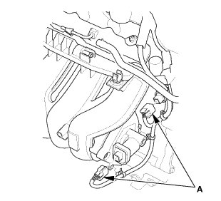 2. Install the harness holder (A) to the cylinder head.