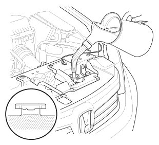1. Pour Honda Long Life Antifreeze/Coolant Type 2 into the radiator up to the base of the filler neck.