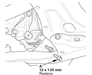 1. Loosely install the new front subframe mounting bolts (A).