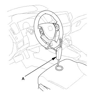 1. Remove the steering wheel holder tool (A).