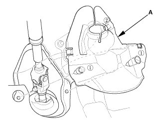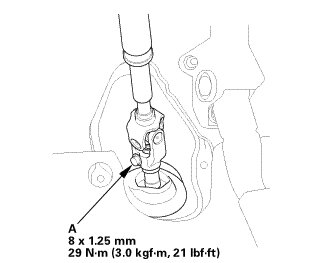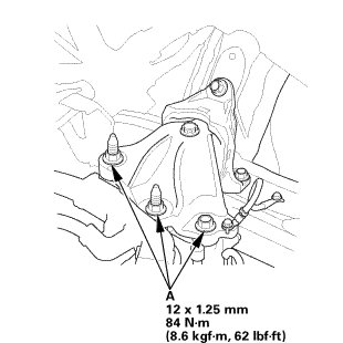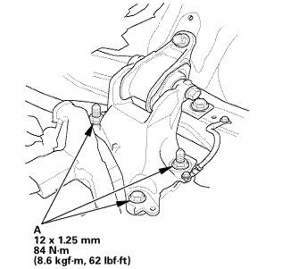 1. Tighten the transmission mount bracket mounting bolt and nuts (A).