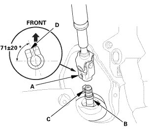 * Pinion shaft without center guide: Position the steering column by aligning the gap (D) within the angle.