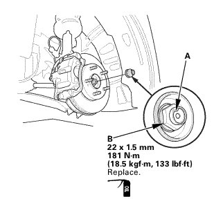 1. Apply a small amount of engine oil to the seating surface of a new spindle nut (A).