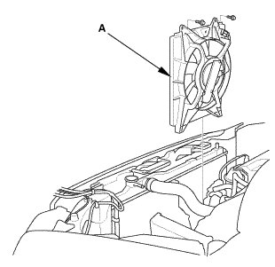 1. Remove the A/C condenser fan shroud assembly (A).