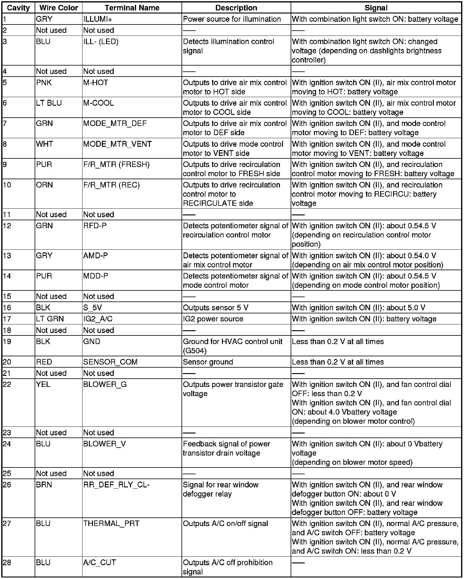 HVAC Control Unit Inputs and Outputs