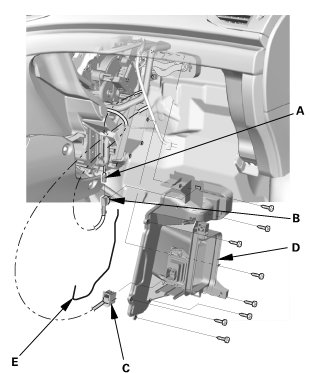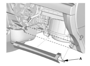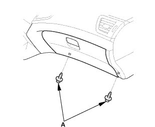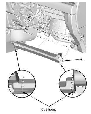 1. Cut the cross brace (A) in the glove box opening with diagonal cutters in the area shown.