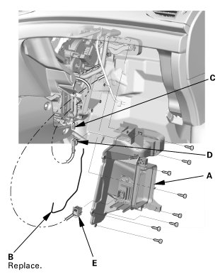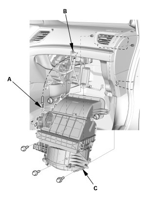 * When the evaporator temperature sensor is installed into the new evaporator core, set the sensor into the factory-preset position (C, D).