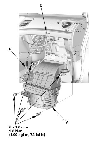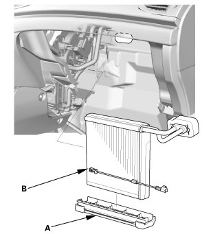 1. Carefully pull out the evaporator core (A) without bending the lines.