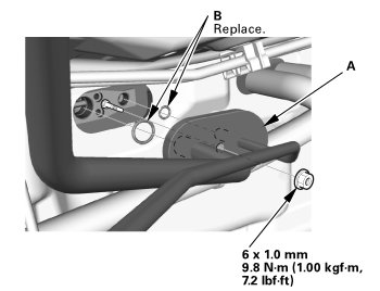 2. Connect the A/C line (A) with new O-rings (B) that are lubricated with clean refrigerant oil.
