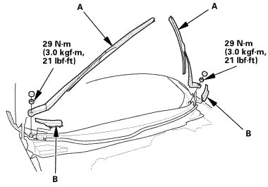 NOTE: Set the wiper arms to the auto-stop position before removal.