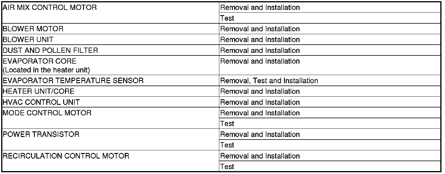 Heating and A/C Systems Component Location Index