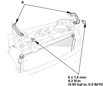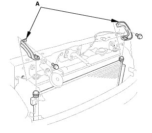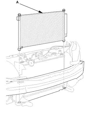 NOTE: Be careful not to damage the radiator and A/C condenser fins when installing the A/C condenser.