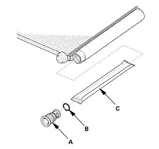 2. Install the cap (B) with a new O-ring (C) that is lubricated with clean refrigerant oil.