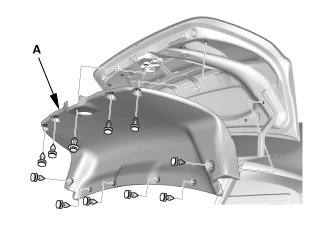 1. Remove the trunk lid trim panel (A).