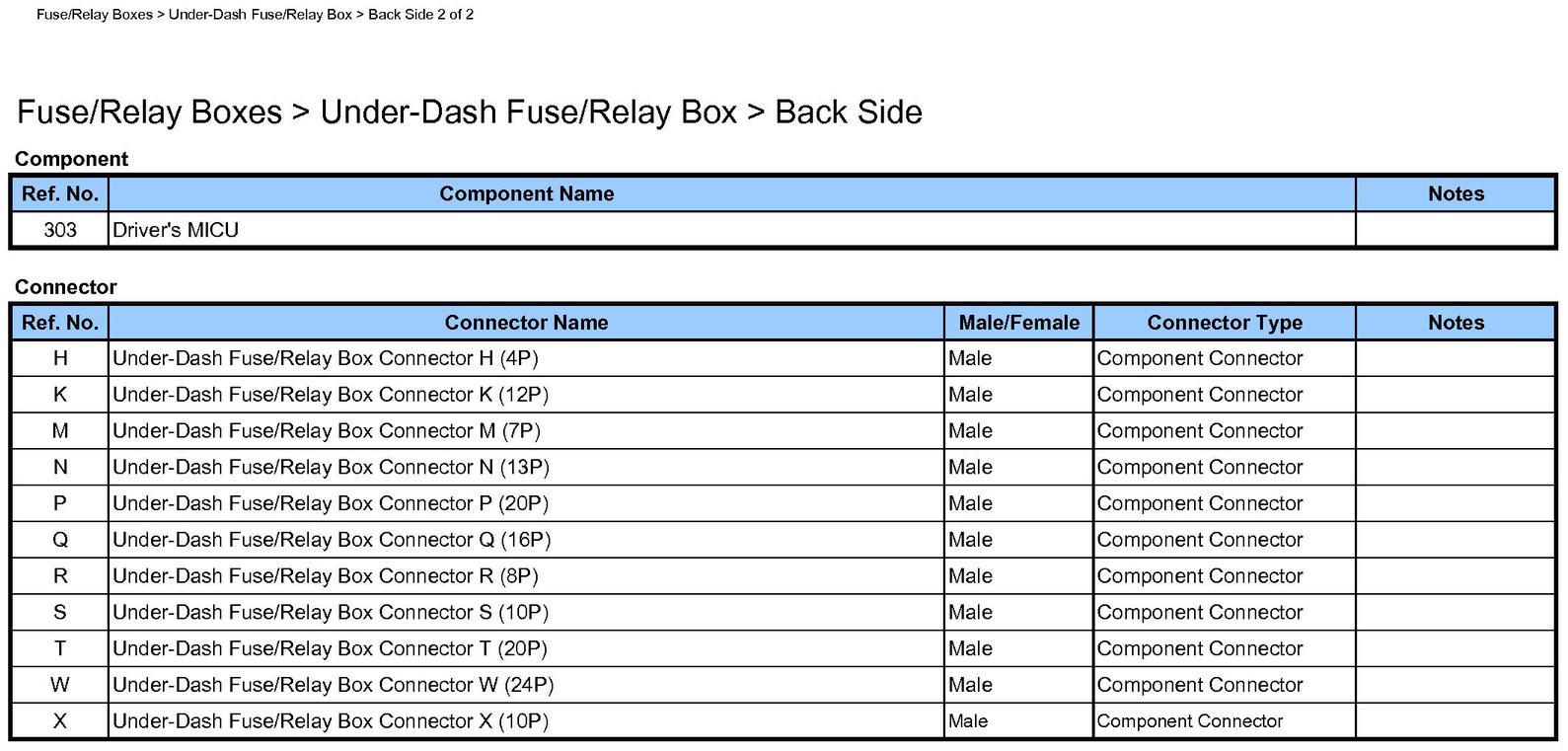 Fuse/Relay Boxes Locations Under-Dash Fuse/Relay Box - Back Side