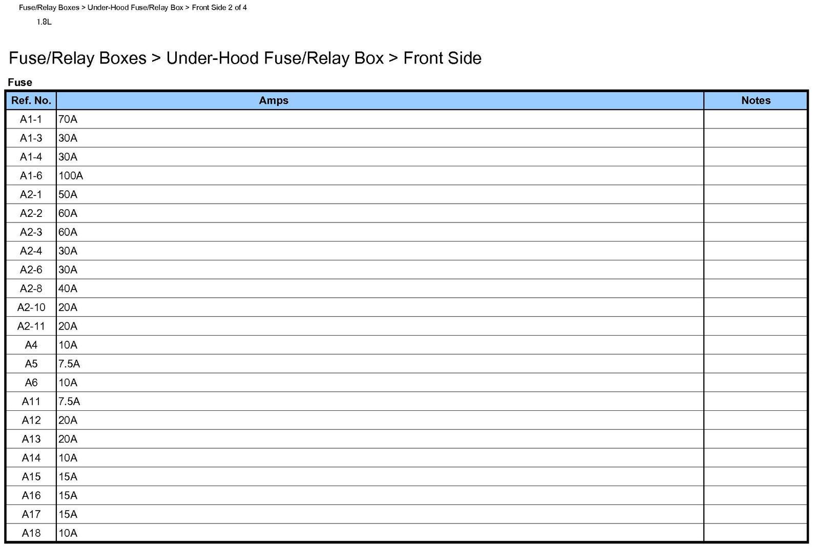 Fuse/Relay Boxes Locations Under-Hood Fuse/Relay Box - Front Side