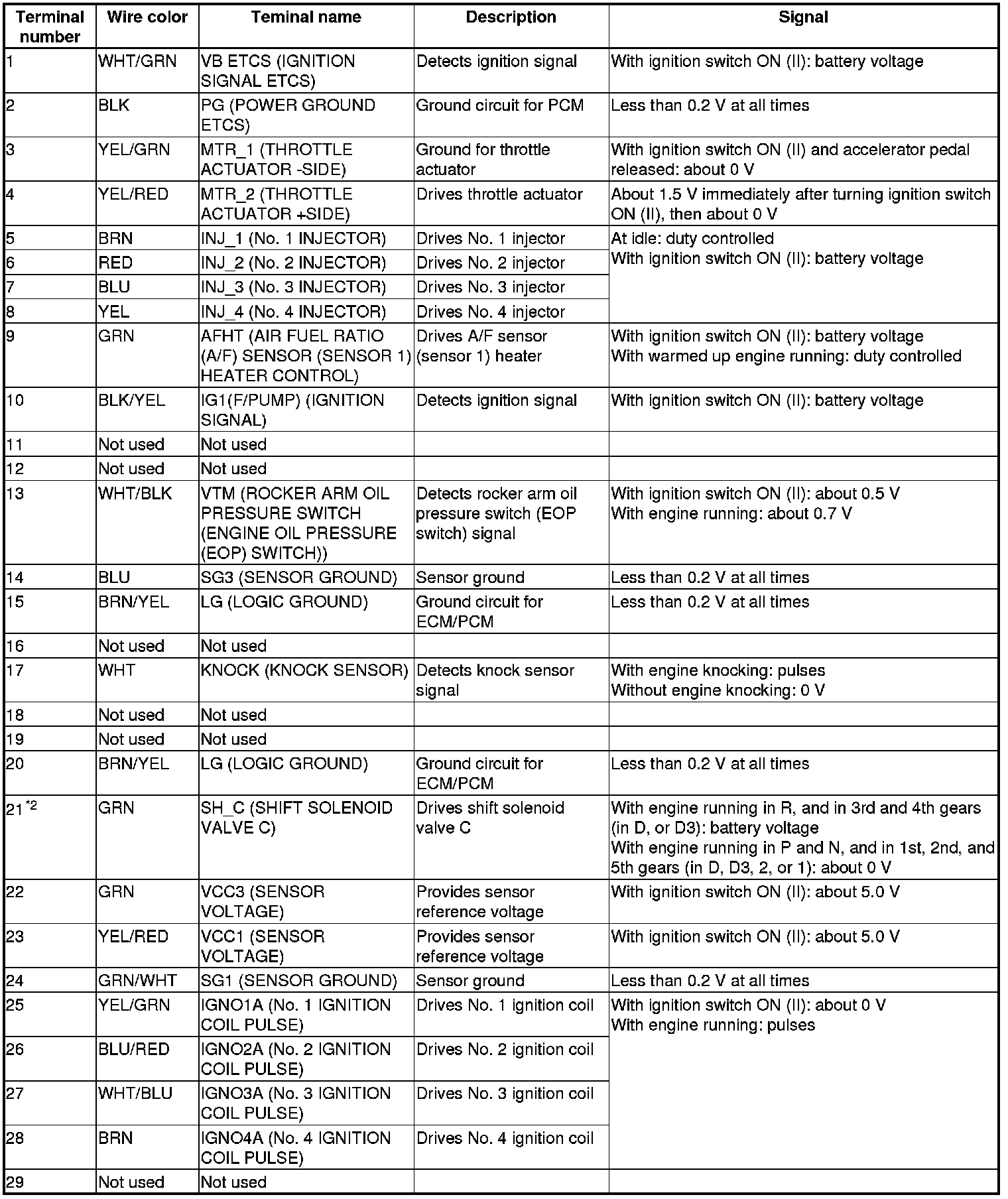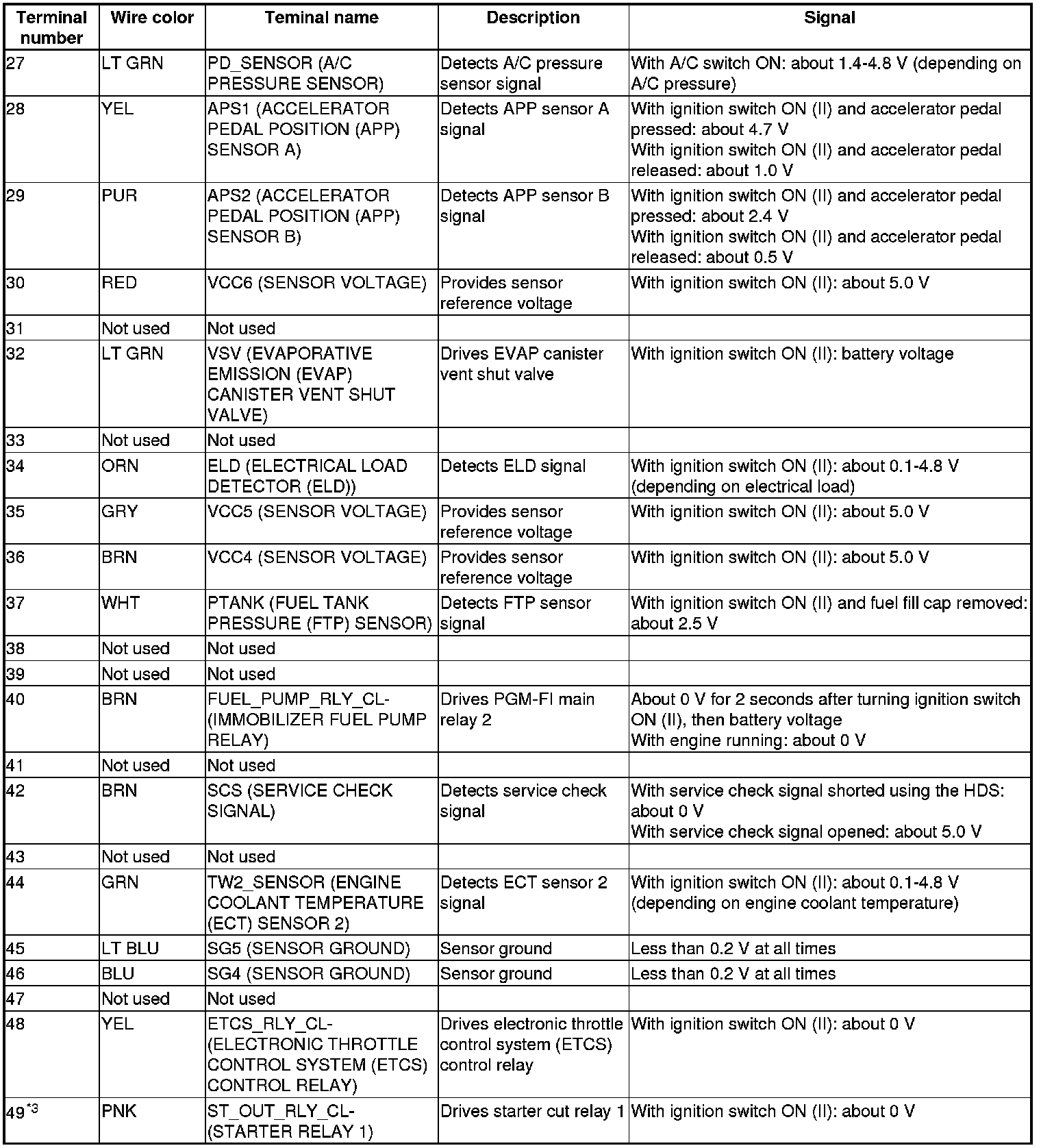 ECM/PCM Connector for Inputs and Outputs