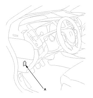 2. If the MIL stays on, connect the HDS to the data link connector (DLC) (A) located under the driver's side of the dashboard.