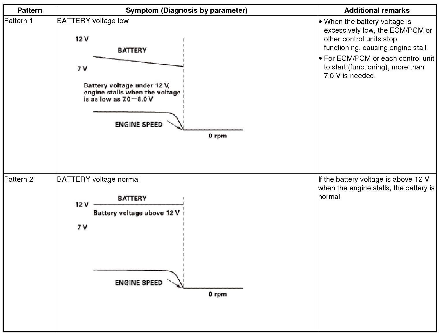 -Pattern 1- Test the battery Battery Test, and check the battery cables and terminal connections