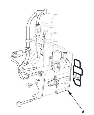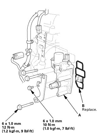 1. Install the rocker arm oil control valve (A) with a new O-ring (B).