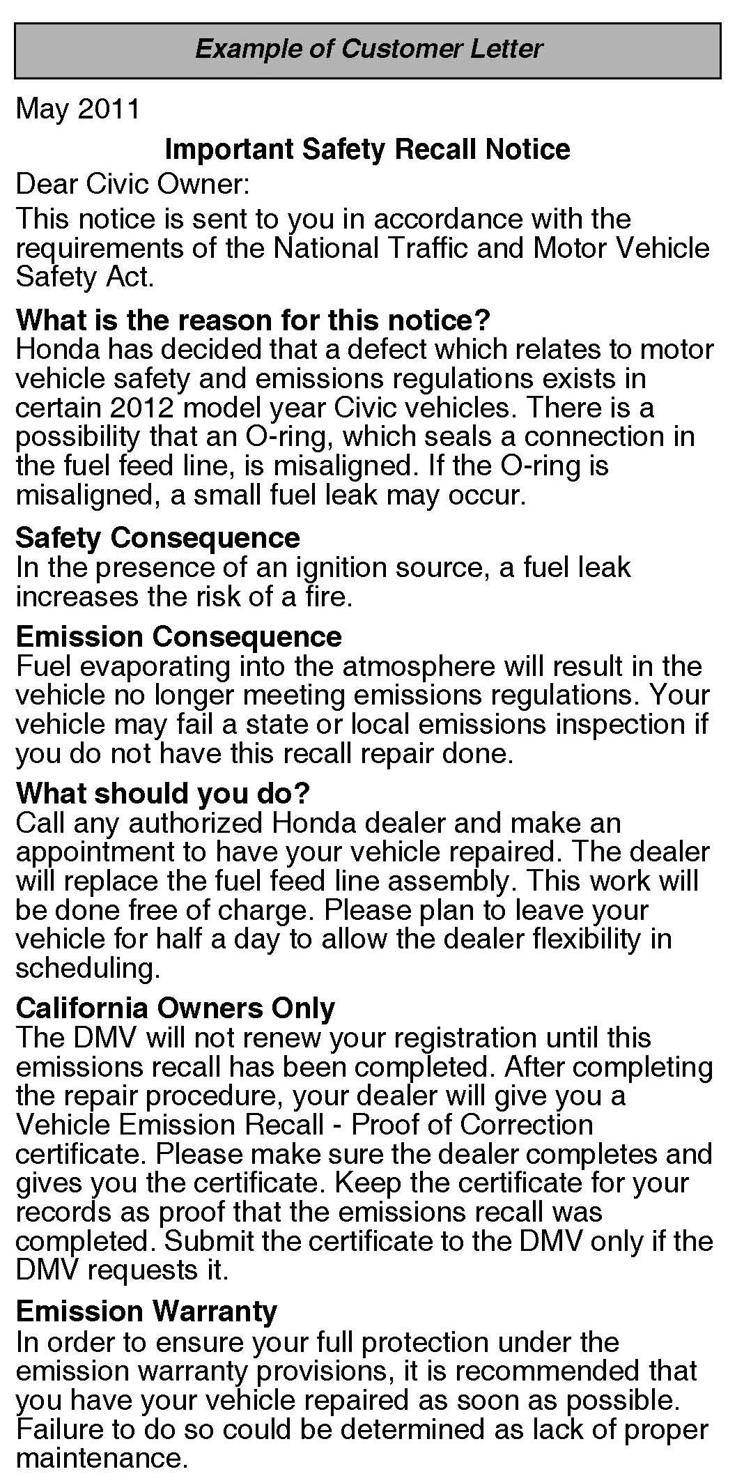 Owners of affected vehicles will receive a notification of this campaign. An example of the customer notification is included at the end of this service bulletin.