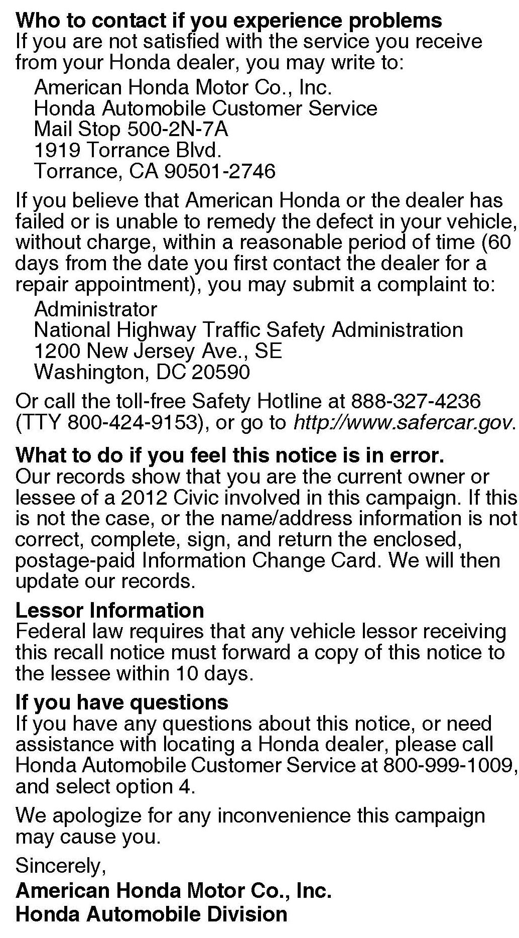 Should a dealership sell an unrepaired vehicle that subsequently causes an injury or damage because of the recalled item, the dealership will be solely responsible to the damaged party, and will be required to defend and indemnify American Honda for any resulting claims. To see if a vehicle in inventory is affected by this campaign, do a VIN status inquiry before selling it.
