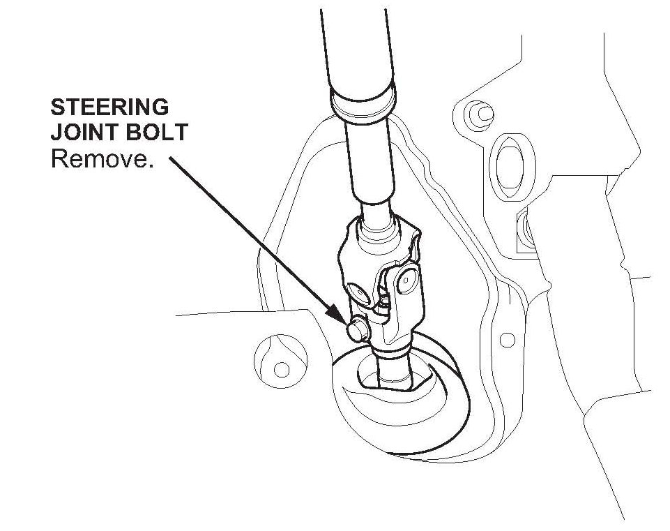 ^ Remove the steering joint bolt. You do not need to disconnect the steering column shaft.