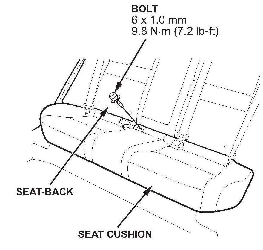 48. Reinstall the rear seat cushion. Torque the bolt to 9 N.m (7 lb-ft).