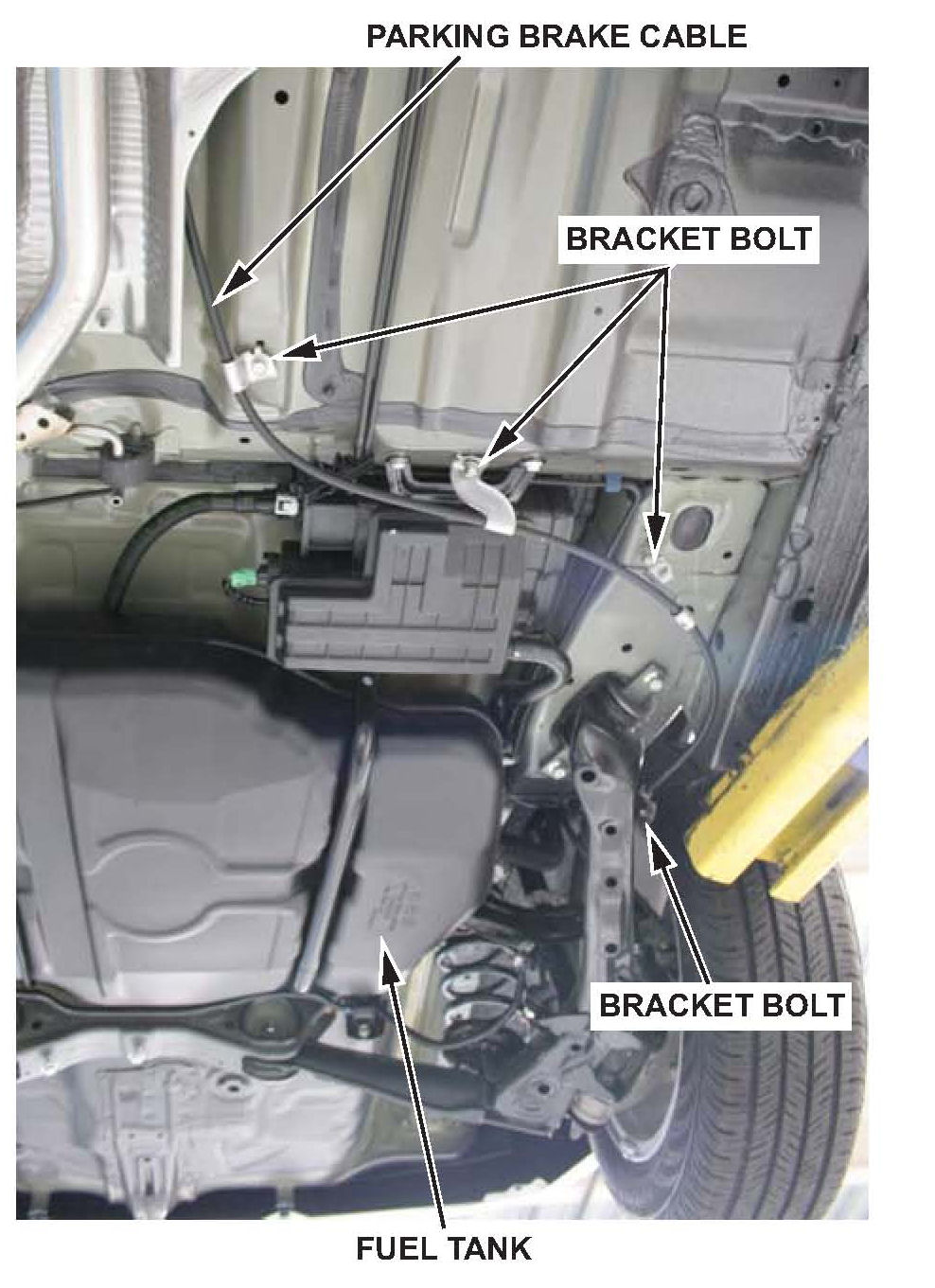 20. Loosen the parking brake cable on the left side by removing the four parking brake cable bracket bolts.